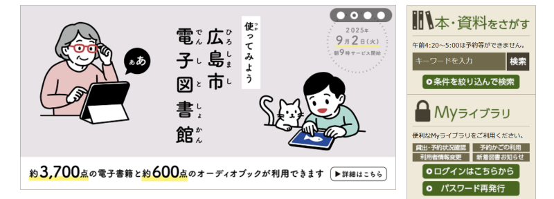 2025年9月2日から、広島市で「電子図書館サービス」がスタートしました。